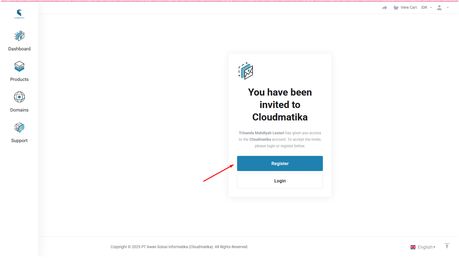 Jika nanti team Cloudmatika sudah menambahkan user lainnya agar dapat login ke CCP perusahaan tersebut, maka silahkan user terkait dapat melakukan pengecekan secara berkala di kotak masuk (inbox) email user untuk melanjutkan ke langkah selanjutnya.