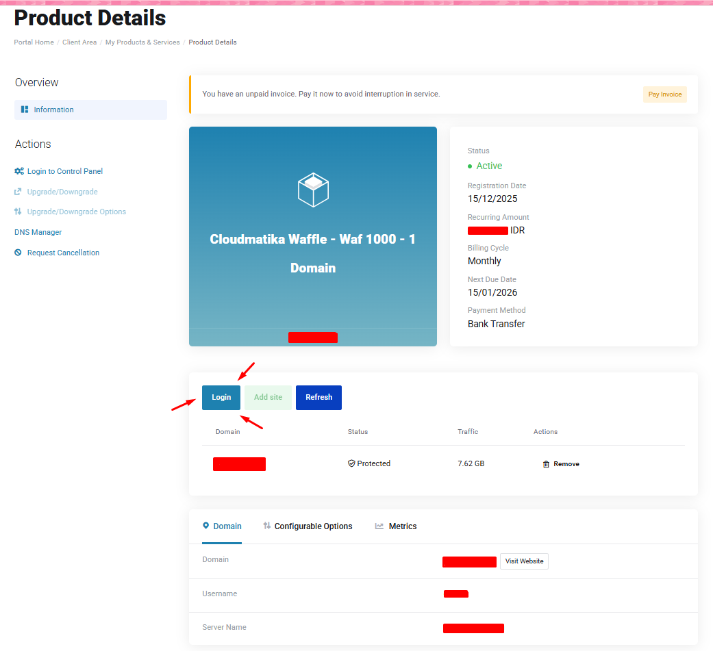 5. Silahkan klik "Login" untuk direct login menuju panel WAF :