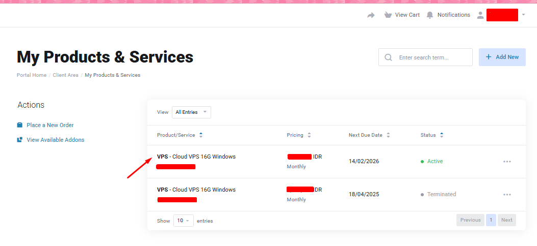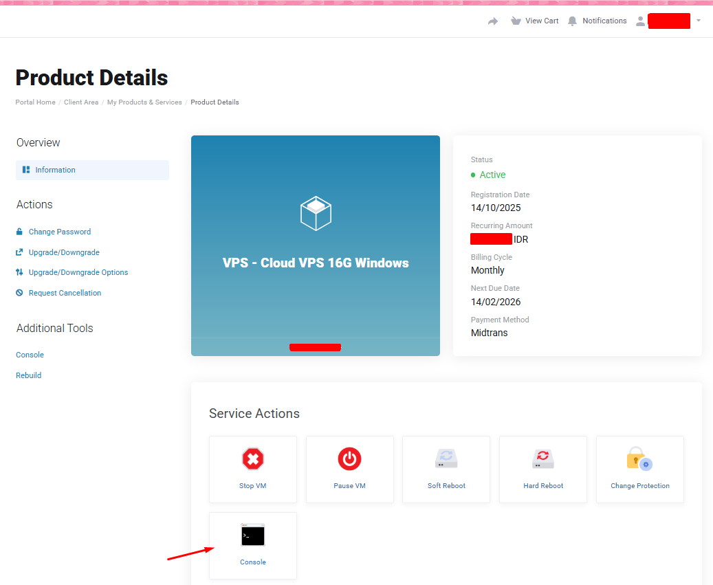Pada layanan VPS, tidak ada panel VPS langsung melainkan adanya Web Console VPS.