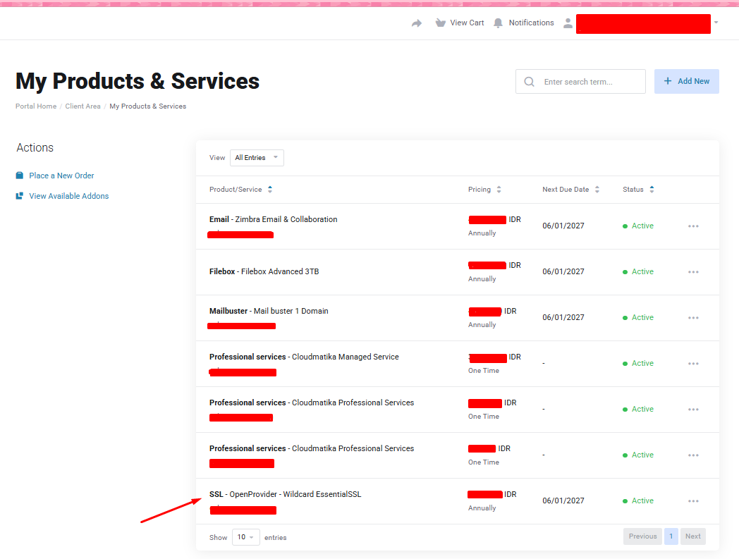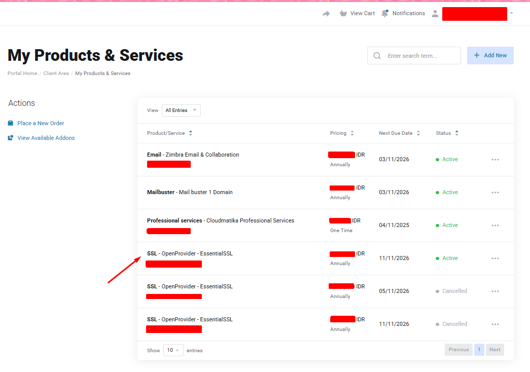 Dashboard SSL adalah panel yang berkaitan dengan layanan Sectigo SSL Certificates (Wildcard & Single).